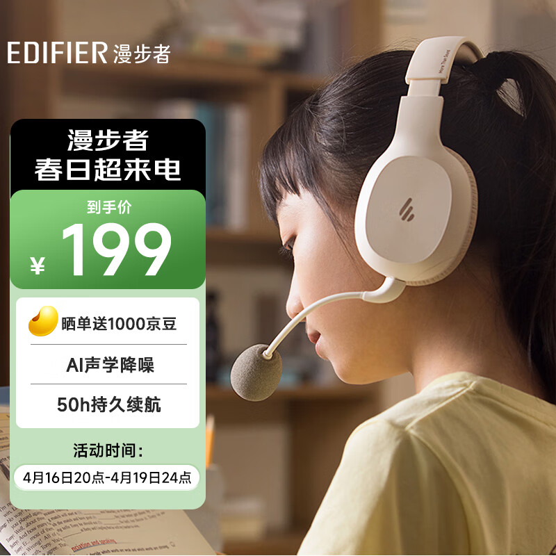 漫步者(EDIFIER)K750W 头戴式蓝牙无线耳返耳机 专业背书耳机 背诵跟读沉浸式学习网课专用降噪耳麦 云岩白价格:199.00元!