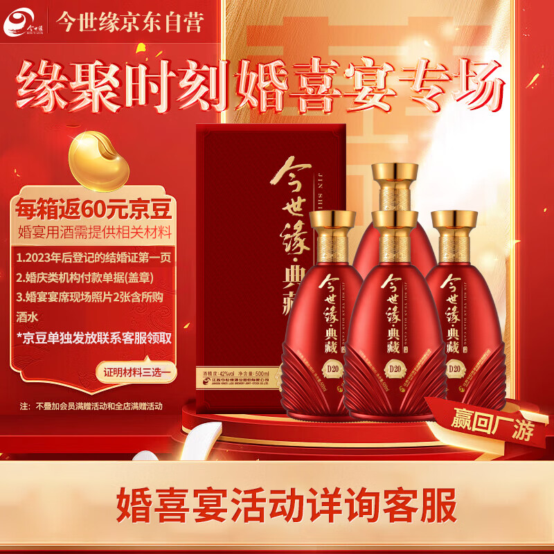 今世缘 典藏D20 柔雅型 白酒 42度 500ml*4瓶 整箱装价格:1360.00元!