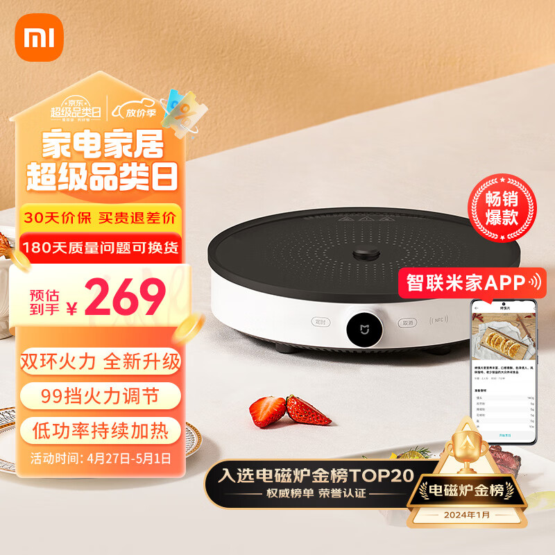 米家小米电磁炉2 大功率猛火爆炒 99挡火力 火锅炒菜蒸煮煎炸烧水 家用智能多功能 围炉煮茶 圆形价格:269.00元!