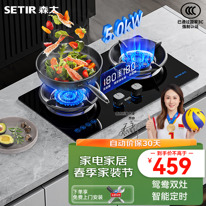 森太(SETIR)家用燃气灶台嵌两用液化气灶双灶 5.0kW大火力九腔猛火智能定时灶鸳鸯双灶 JZY-TD25 液化气价格:459.00元!
