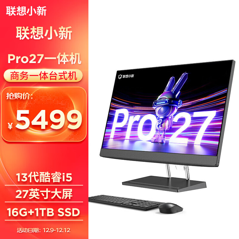 联想(Lenovo)小新Pro 27一体台式电脑27英寸2.5K高刷屏(13代i5-13500H 16G DDR5内存 1TB SSD )价格:5499.00元!