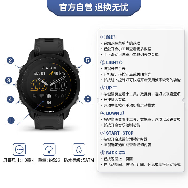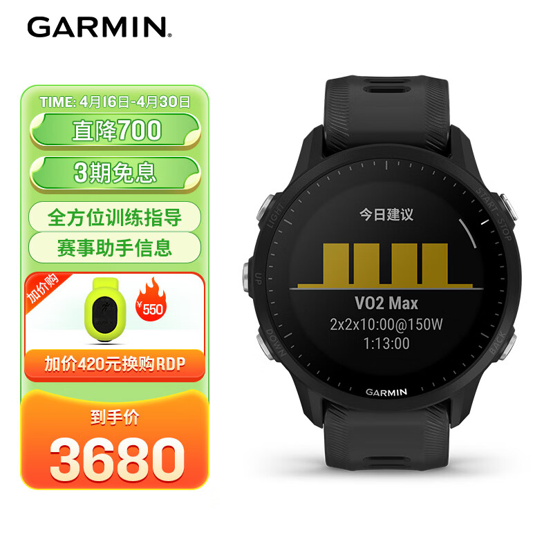 佳明(GARMIN)Forerur955黑色多功能运动手表户外心率跑步骑行定位游泳血氧音乐价格:3680.00元!