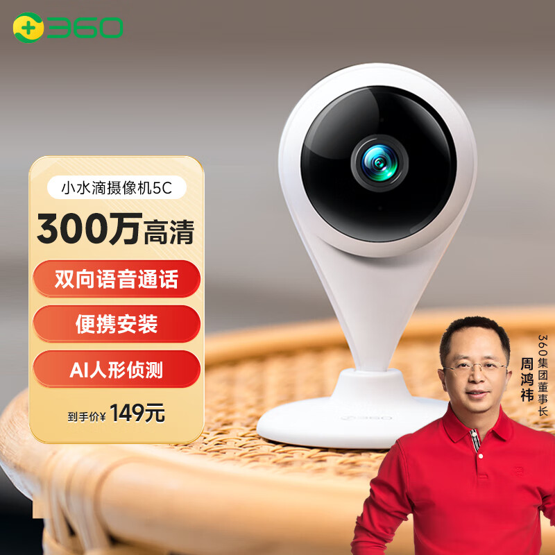 360摄像头家用监控摄像智能摄像机300W小水滴5C 2K版wifi高清摄像头高清夜视远程监控AC1P宝宝监护器价格:139.00元!