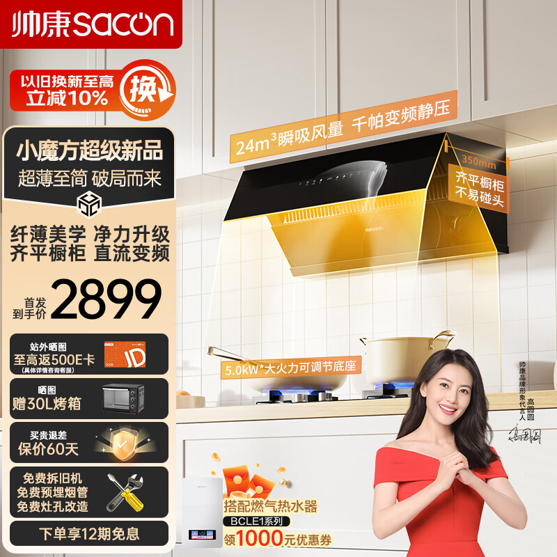 帅康(Sacon)抽油烟机 超薄侧吸 家用24m3爆炒大风量自清洗超薄眼烟灶套装C8315+LB850B2天然气价格:2899.00元!