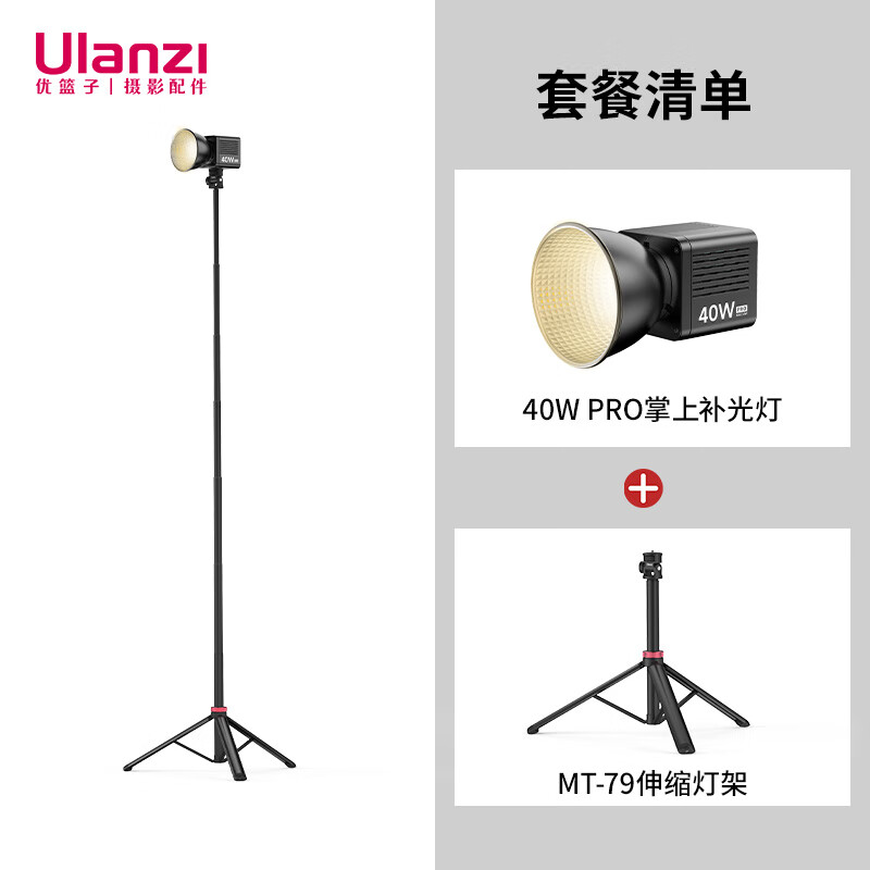 ulanzi40W PRO掌上补光灯灯架套装价格参考: