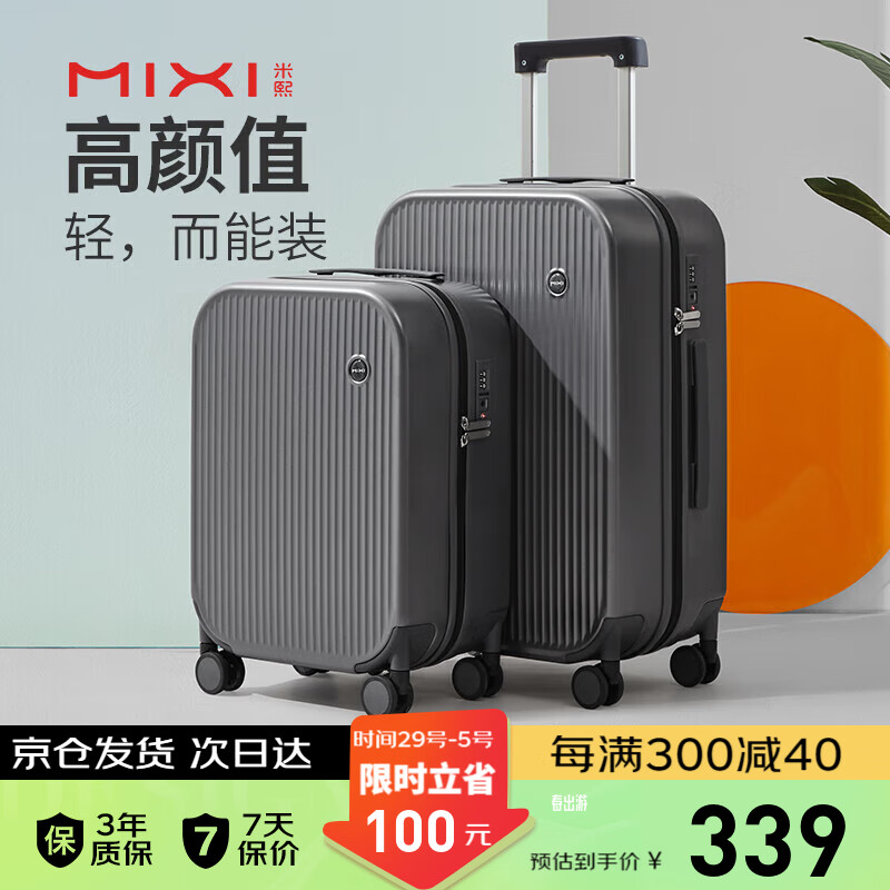 米熙高颜值拉杆箱子行李箱大容量旅行箱女密码箱轻音轮24英寸矿岩灰73价格:439.00元!
