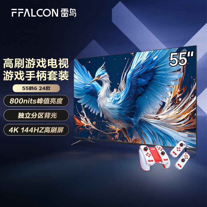 FFALCON雷鸟 鹤6 24款 55英寸游戏电视+运动加加游戏手柄套装 144Hz高刷 4K液晶平板电视机55S575C PRO价格:3598.00元!