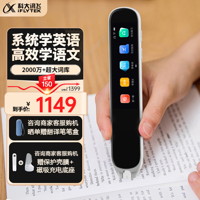 科大讯飞AI翻译笔P20 Plus 英语点读笔 学习机 电子词典笔 英语学习 翻译机点读单词笔 冰川银价格:1149.00元!
