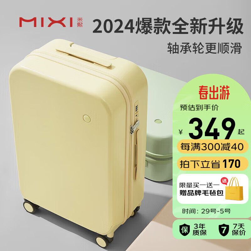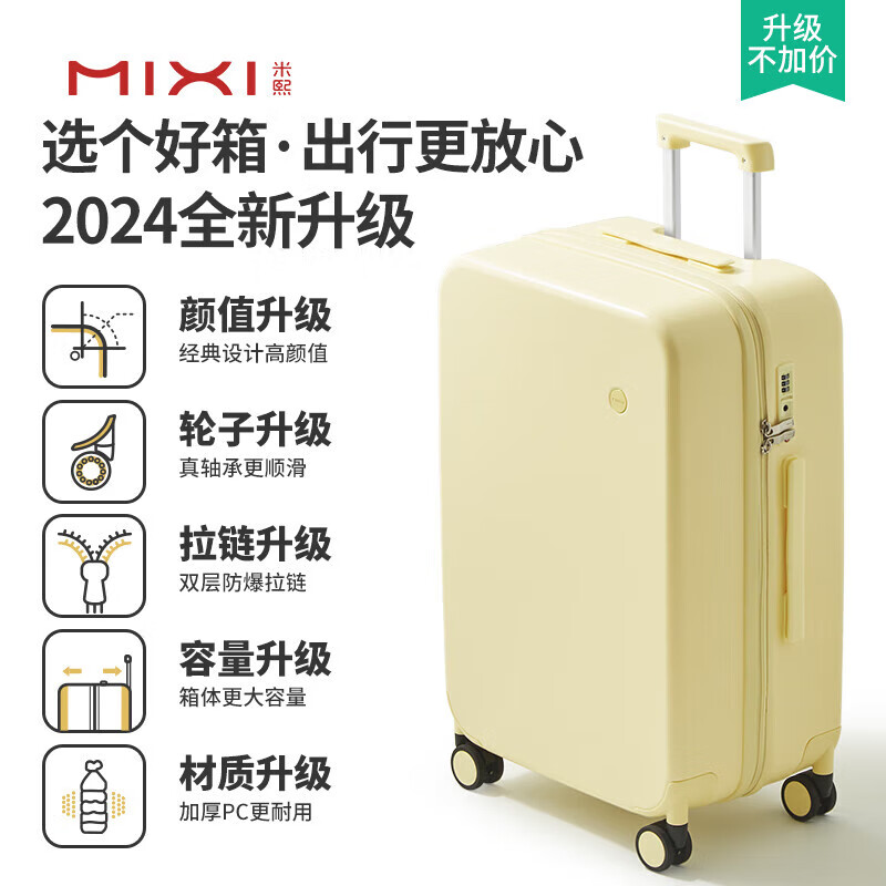米熙mixi高颜值拉杆箱子行李箱大容量女旅行箱包密码箱男22英寸云雀黄价格:519.00元!