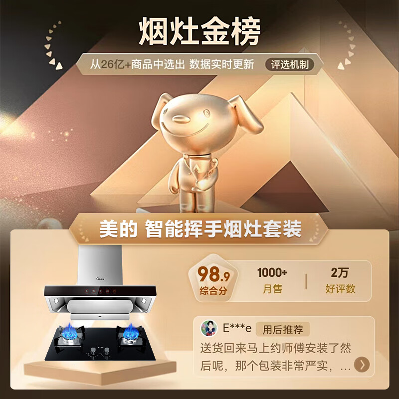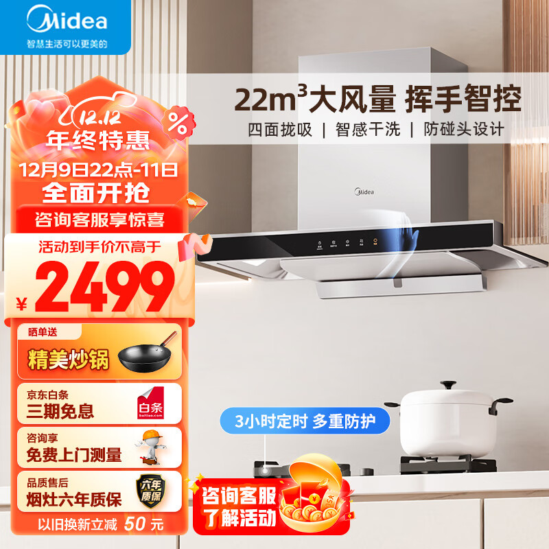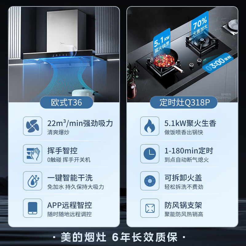 美的顶吸欧式抽油烟机 22大吸力 家用厨房油烟机排烟罩 自动清洗 烟灶套装 T36+Q318P天然气价格:2499.00元!