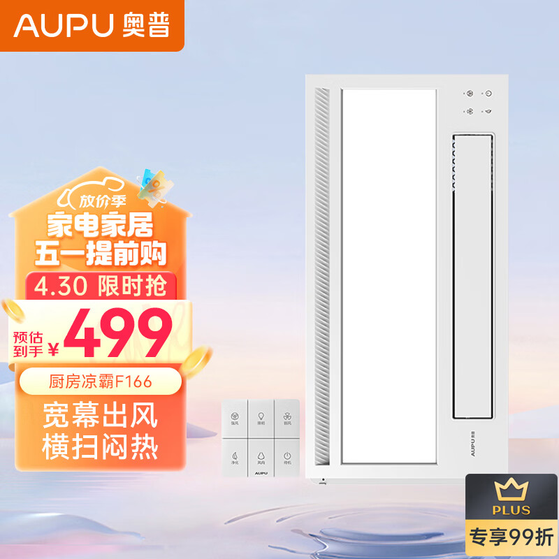 奥普(AUPU)凉霸F166遥控凉霸厨房吹风扇 照明吹风一体 负离子净化价格:749.00元!