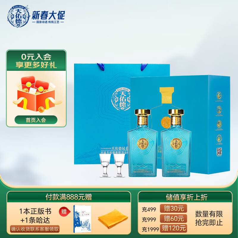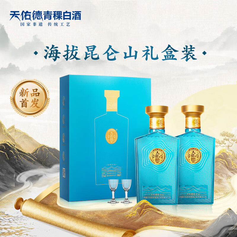 天佑德 海拔昆仑山 清香型白酒 52度 500ml*2瓶 礼盒装【青海青稞酒】价格:488.00元!