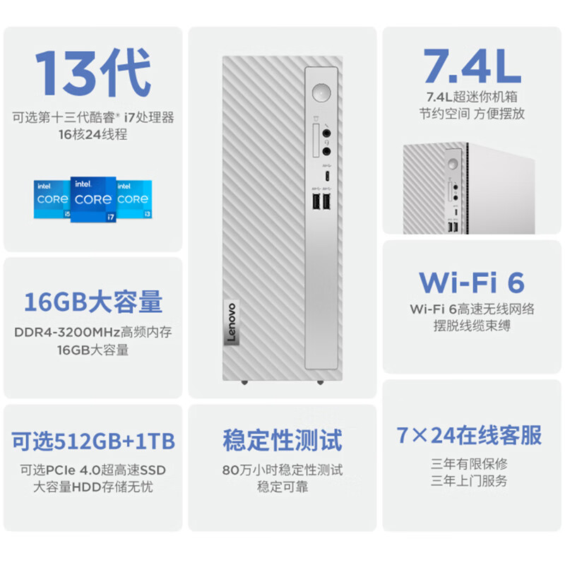 联想(Lenovo)天逸510S个人商务办公台式机电脑主机(酷睿13代i5-13400 16G 512G SSD win11)单主机价格:3499.00元!
