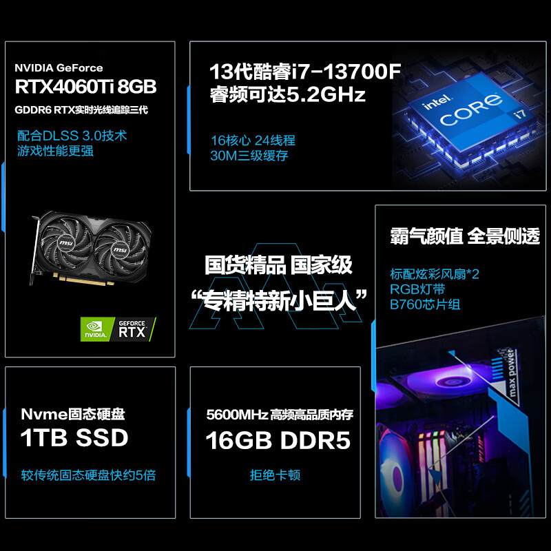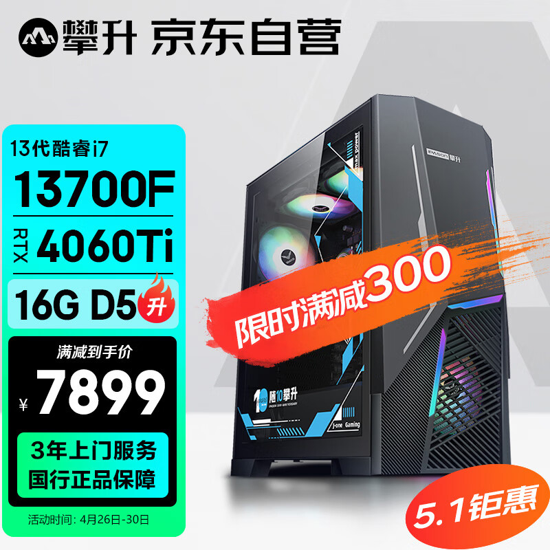 攀升 战神X 台式电脑游戏台式机电脑主机组装电脑主流游戏全套(13代酷睿i7 RTX4060TI 1TB 16GD5)价格:8199.00元!