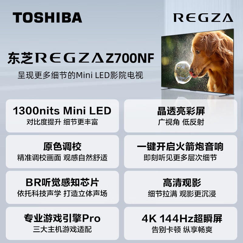东芝显微屏电视85Z700NF 85英寸高光效Mini LED 4K144Hz高刷 BR芯片 液晶平板游戏电视机 以旧换新价格:15999.00元!
