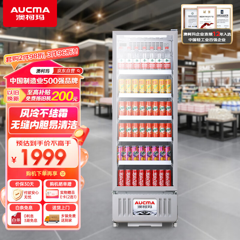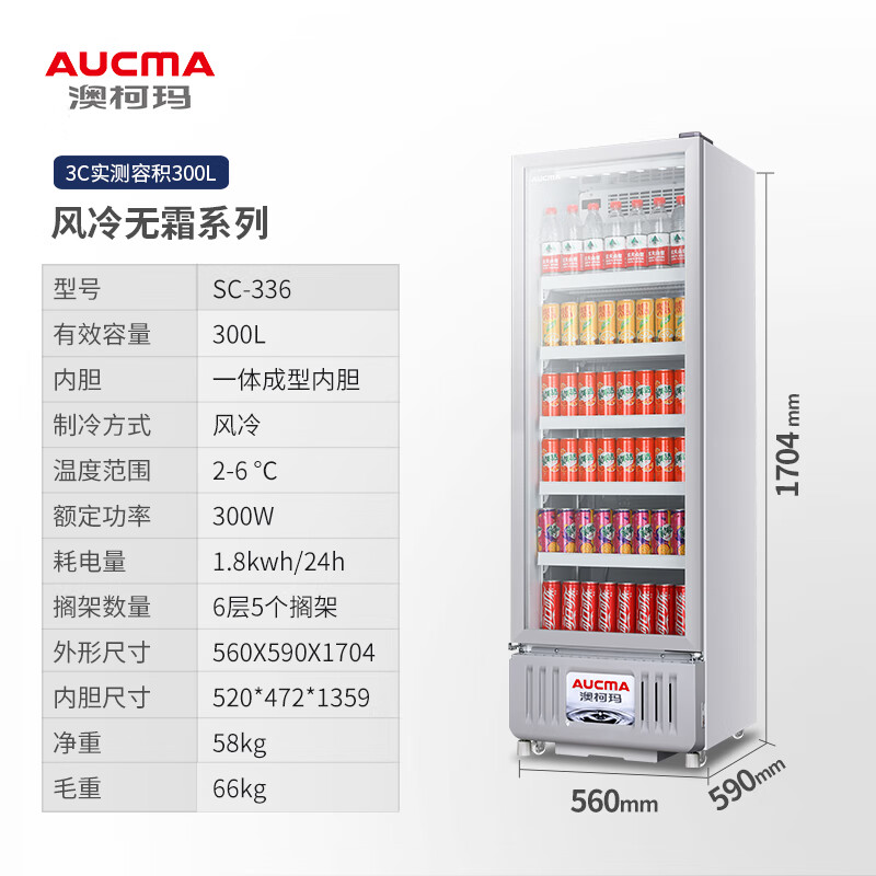 澳柯玛(AUCMA)336升商用单门展示柜冰吧冷柜立式冷藏柜超市玻璃门饮料保鲜柜高端风冷无霜 独立涡轮散热SC-336价格:1999.00元!