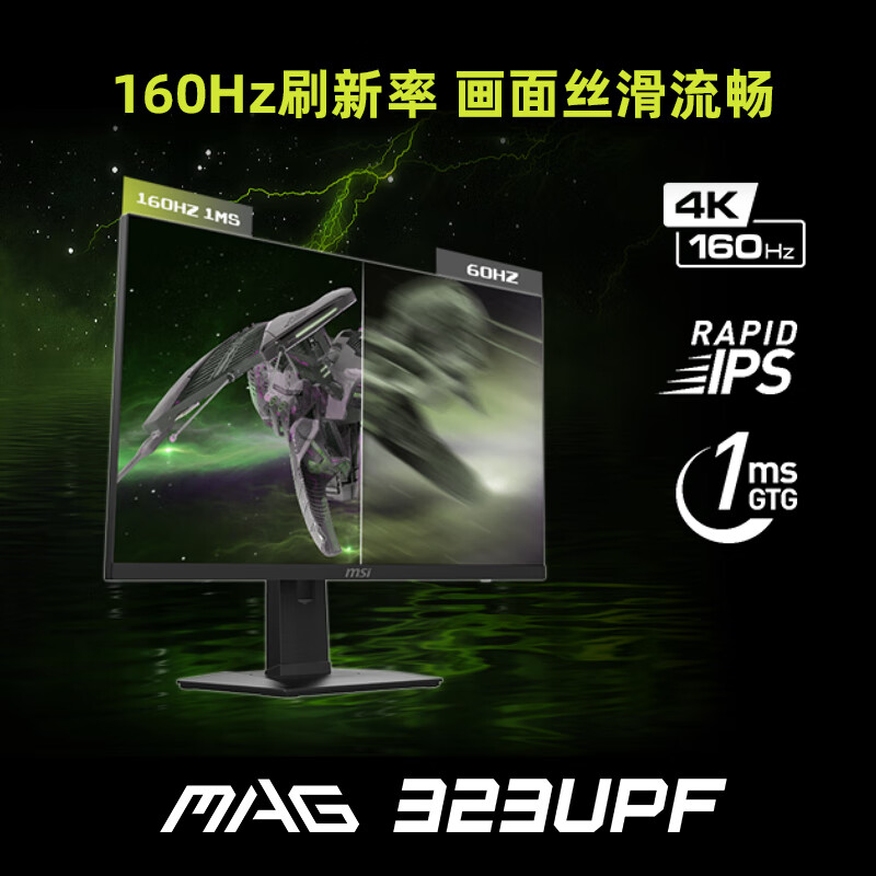 微星(MSI)32英寸 4K HDR600 快速液晶IPS 超频160Hz 1ms(GTG) 90W Type-C 游戏电竞显示器屏 MAG 323UPF价格:5499.00元!