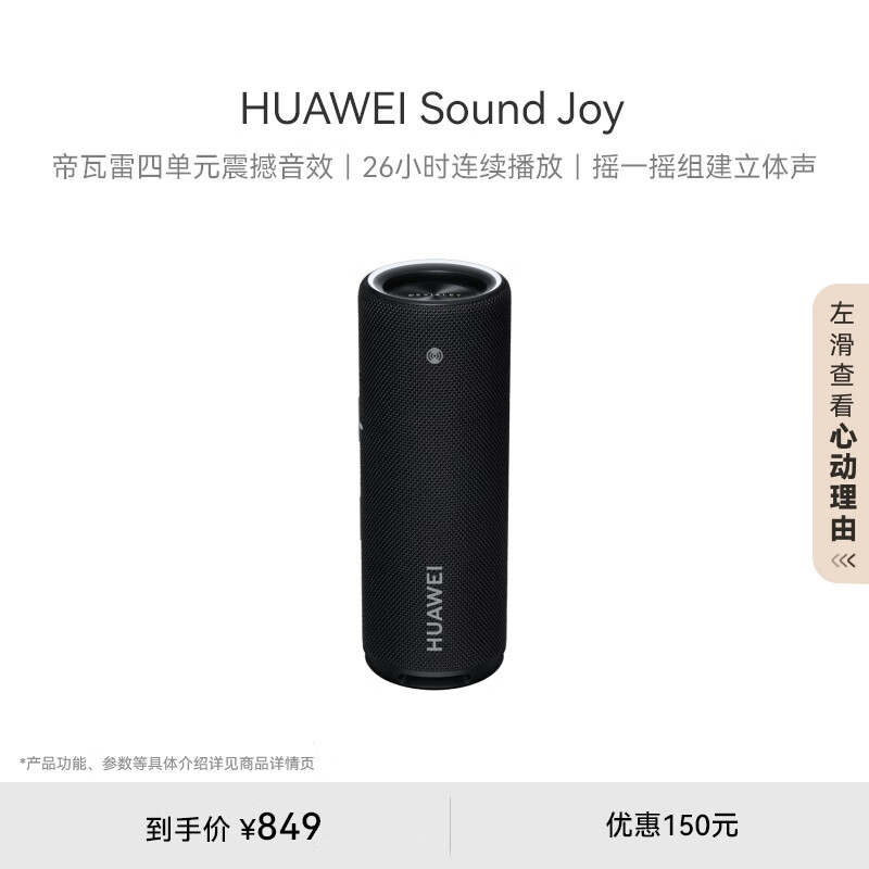 华为Sound Joy 便携式智能蓝牙音箱 电脑音响 两台组建立体声 26小时长续航户外音箱 曜石黑价格:827.00元!