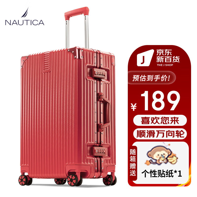 NAUTICA结婚行李箱新娘陪嫁箱20英寸大红色箱子拉杆箱女皮箱婚礼密码箱价格:189.00元!