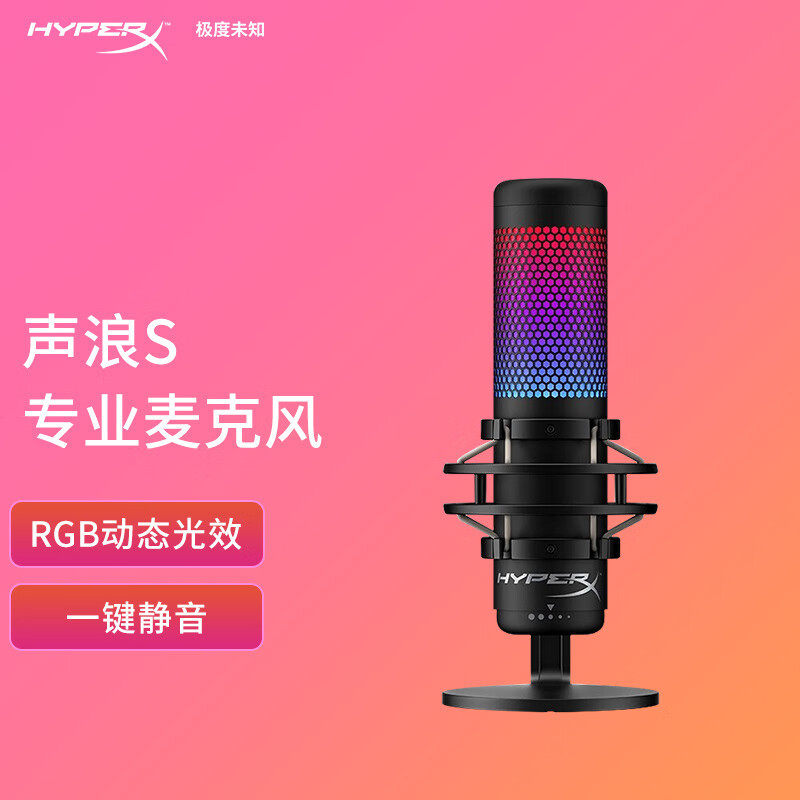 极度未知(HYPERX)原金士顿声浪S 有线桌面电脑直播麦克风k歌唱歌抖音游戏电竞主播家用专业话筒含支架 黑色价格:999.00元!