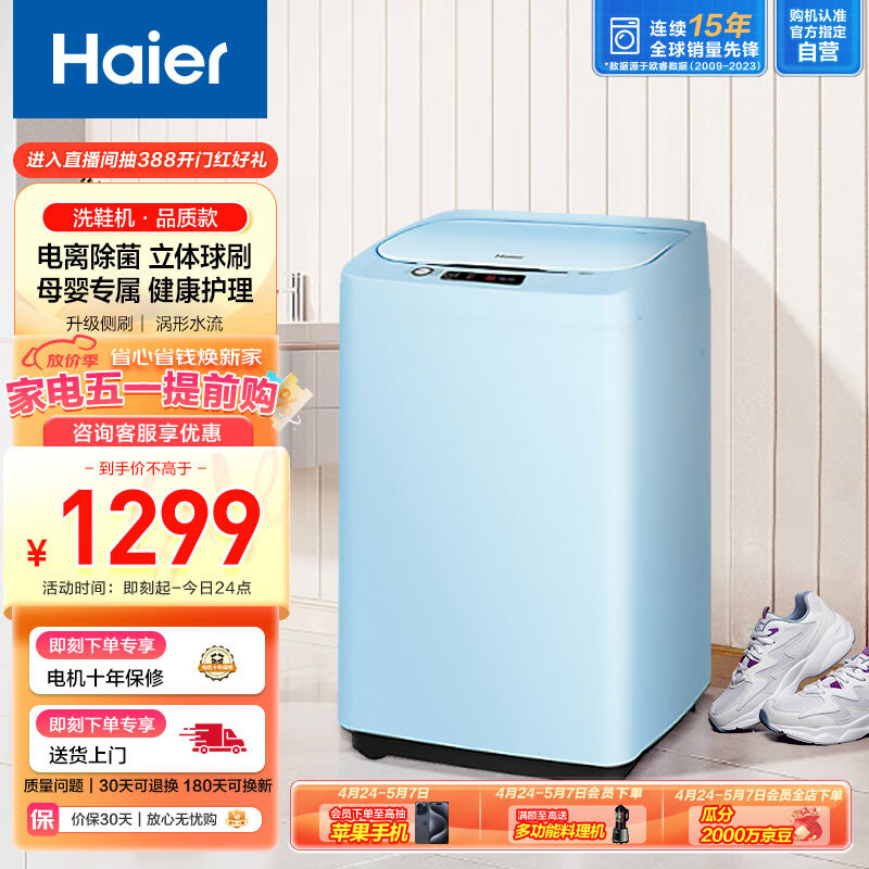 海尔(Haier)洗鞋机全自动 刷鞋机洗衣机小型 洗鞋神器可脱水 免拆鞋带一投即洗 电离除菌99.99% HQ1-T259价格:1199.00元!