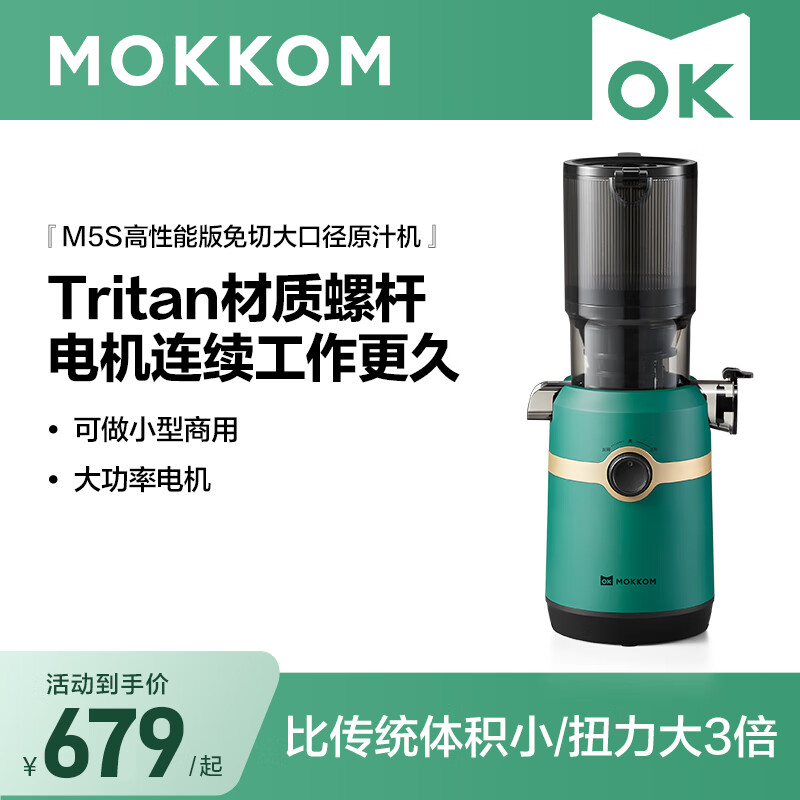 mokkom磨客大口径原汁机榨汁机汁渣分离家用低速果蔬多功能鲜榨果汁可商用电动料理机M5S升级款墨绿色价格:679.00元!
