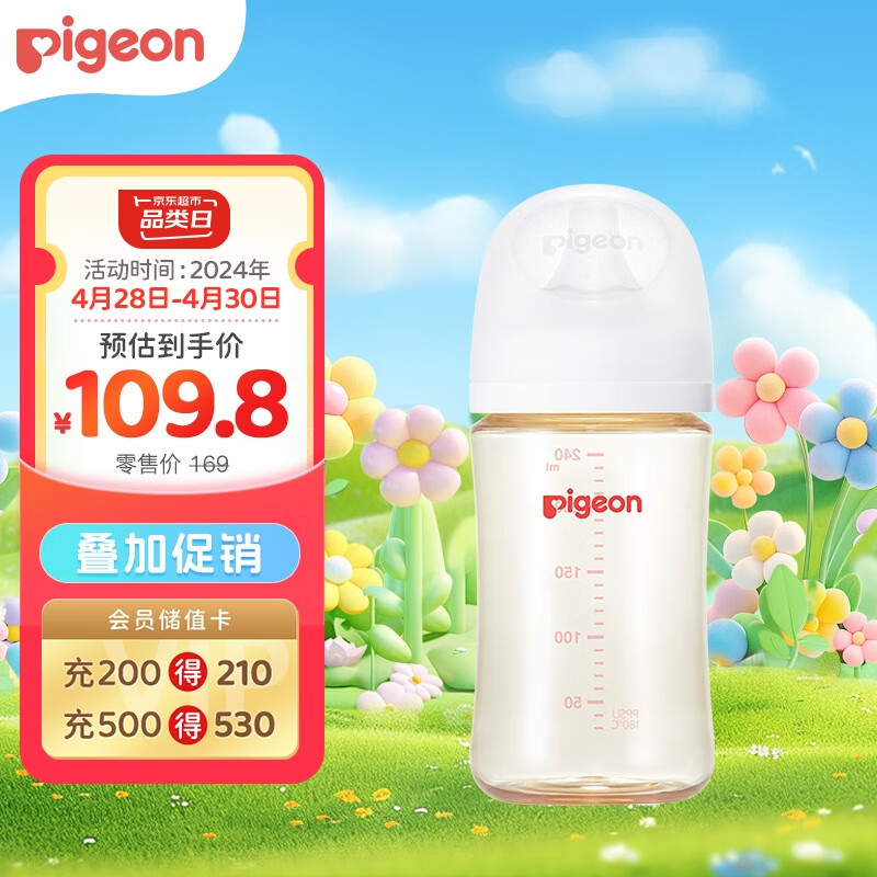 贝亲(Pigeon)自然实感第3代 婴儿PPSU奶瓶 宽口径 240ml AA191 3个月以上价格:119.00元!