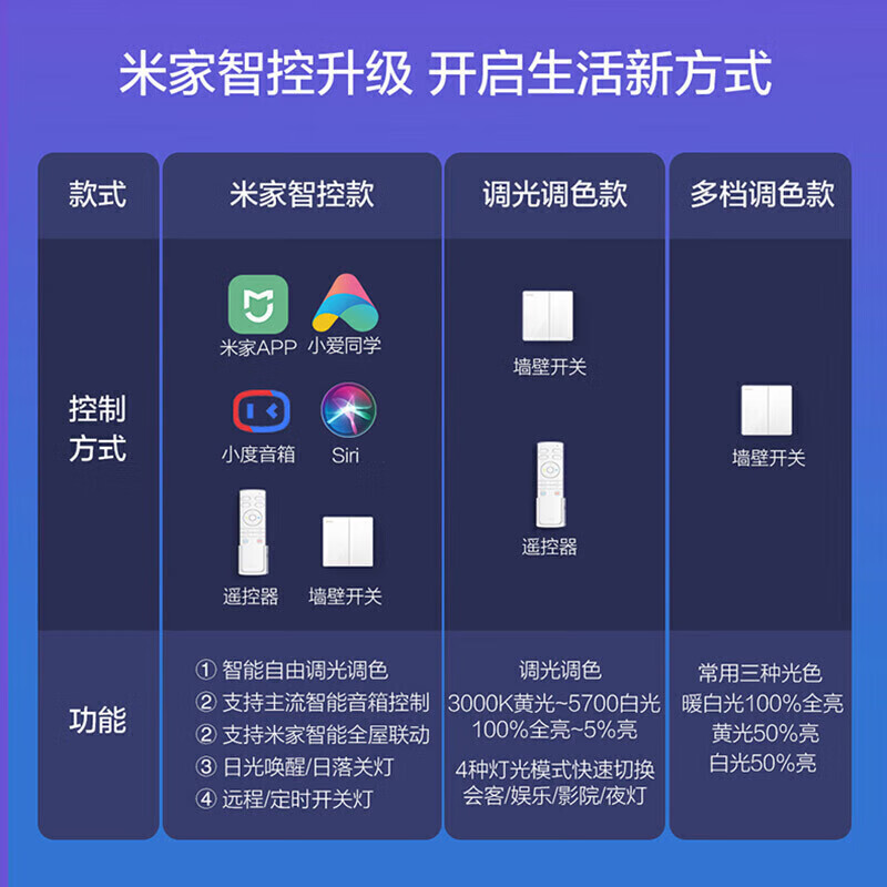 操控方式:开关式,APP操控,语音控制,遥控器控制