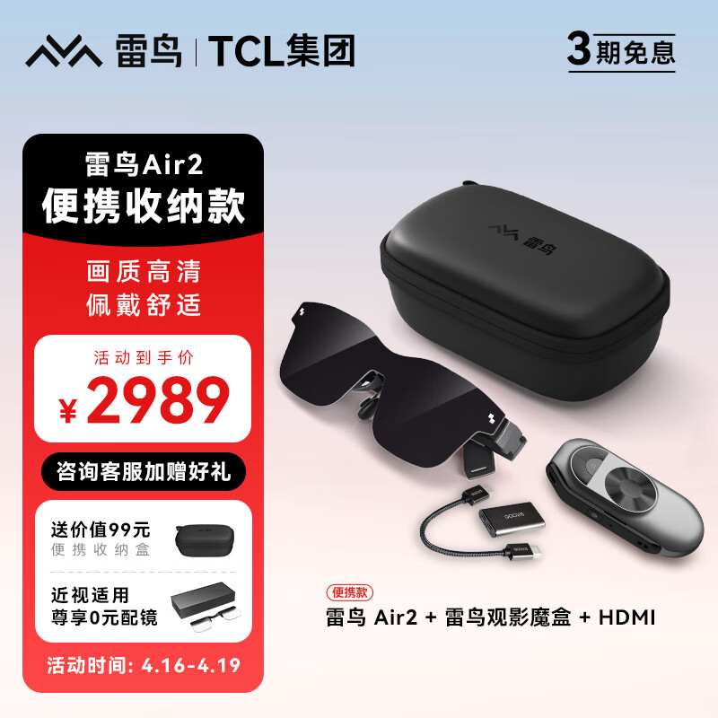 雷鸟Air2 便携收纳款 智能AR眼镜 高清巨幕观影眼镜 120Hz高刷 HDMI转换器+魔盒套装 送男友礼物价格:3589.00元!