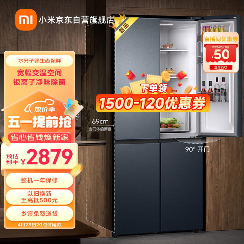 米家小米606L十字对开门四门大容量家用冰箱一级能效超薄嵌入墨青岩面板银离子除菌BCD-606WMFSA价格:2999.00元!