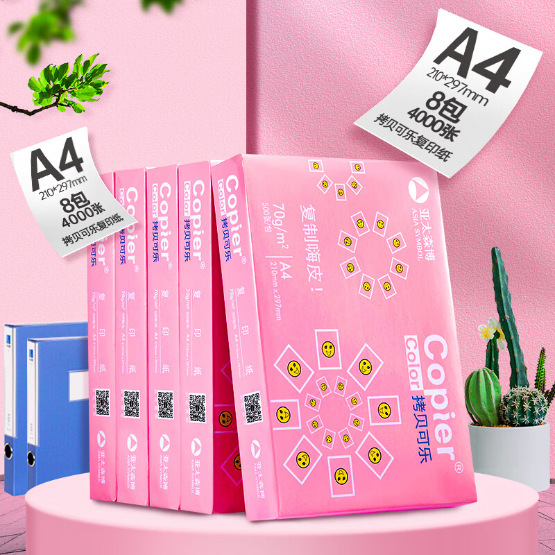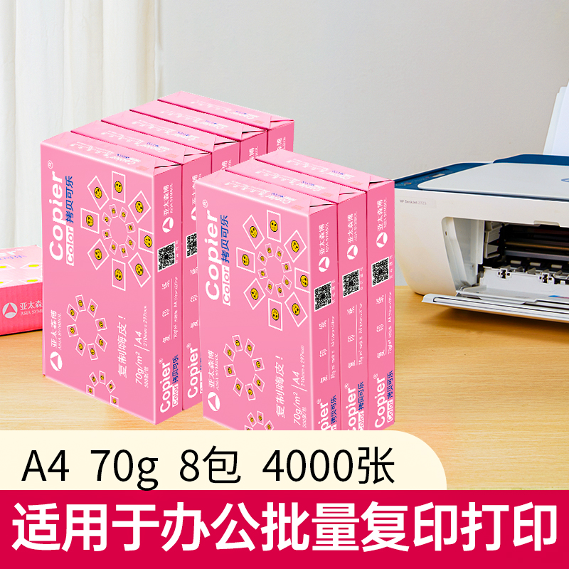 亚太森博拷贝可乐A4打印纸 70g 500张*8包 双面打印不透印 字迹清晰 复印纸 整箱4000张【专业造纸厂牌】价格:142.00元!