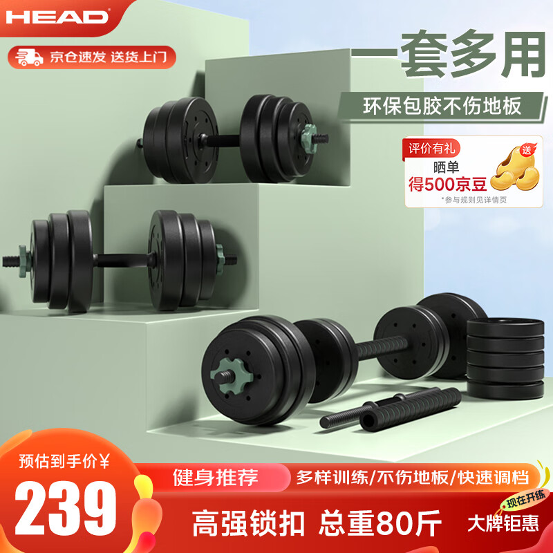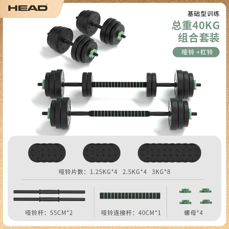 HEAD海德哑铃男健身器材杠铃套装组合可拆卸家用健身器材40kg价格:239.00元!