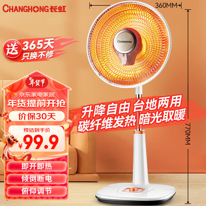 长虹(CHANGHONG)取暖器家用小太阳电暖器电暖气取暖烤火炉台地两用电热两档调节速热高度可调CDN-RT207价格:99.90元!