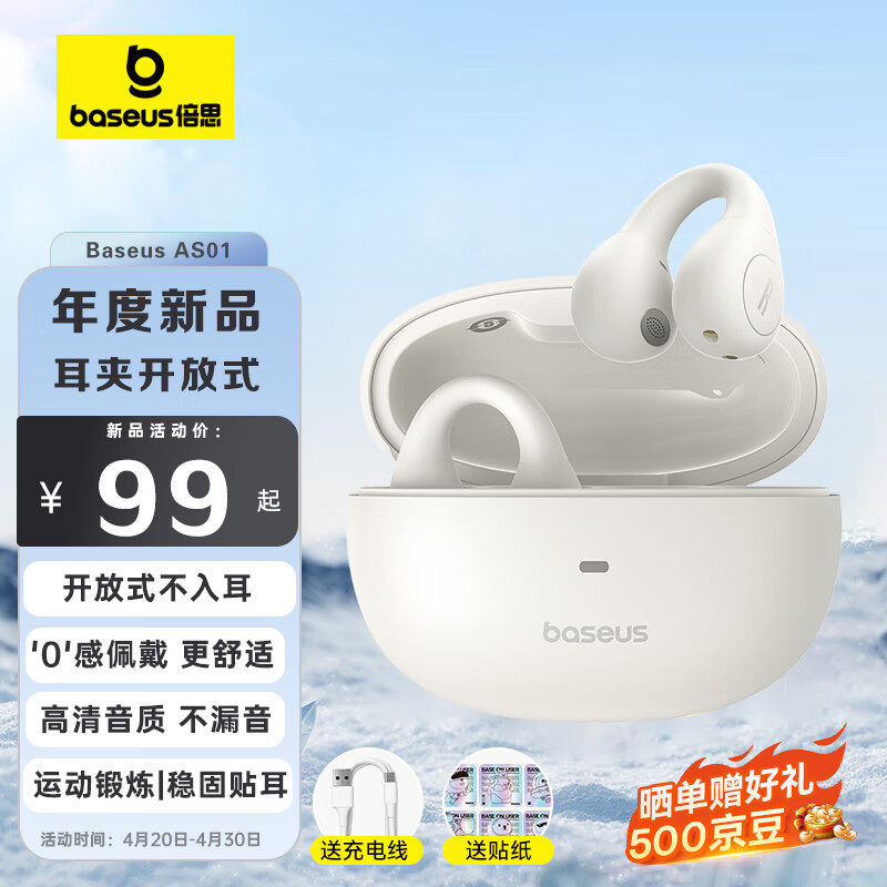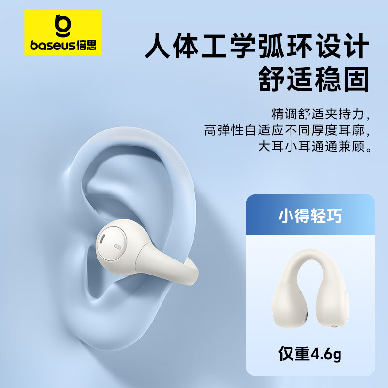 倍思 蓝牙耳机耳夹 骨传导耳机概念 不入耳开放式挂耳式 运动跑步游戏真无线降噪 适用华为小米 白价格:129.00元!