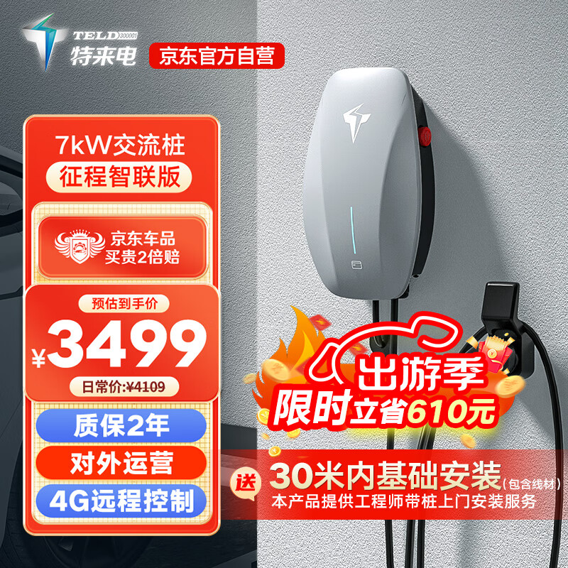 特来电充电桩7千瓦(送装一体)30米内免费安装适配于阿维塔飞凡别克荣威小米汽车su7赛力斯6代智联版价格:3199.00元!