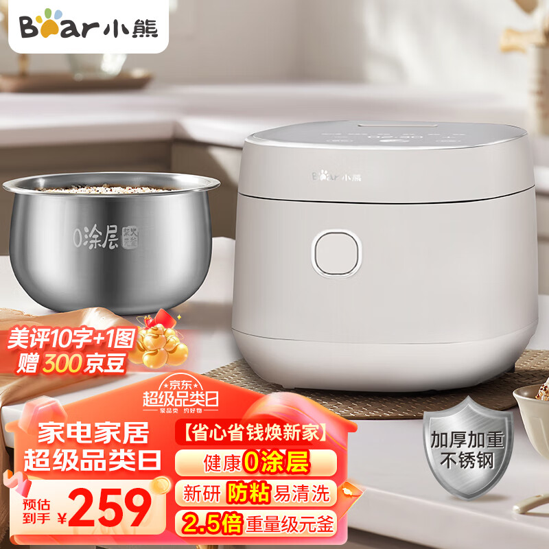 小熊电饭煲 0涂层3L不锈钢球釜内胆2-6个人电饭锅 家用多功能无涂层电饭煲 碧玺灰 DFB-P30H3价格:259.00元!