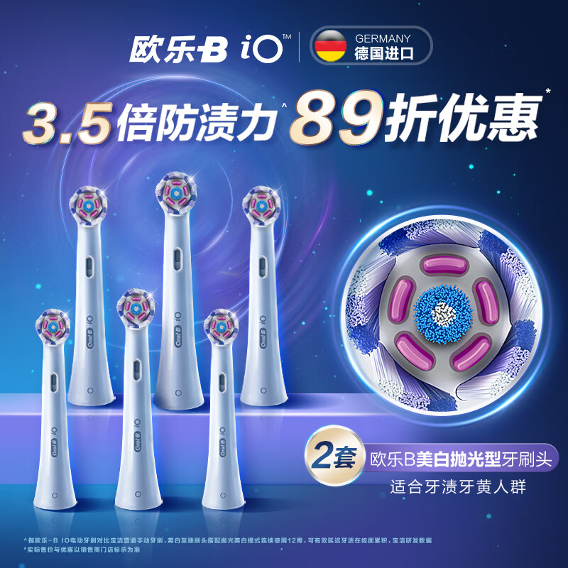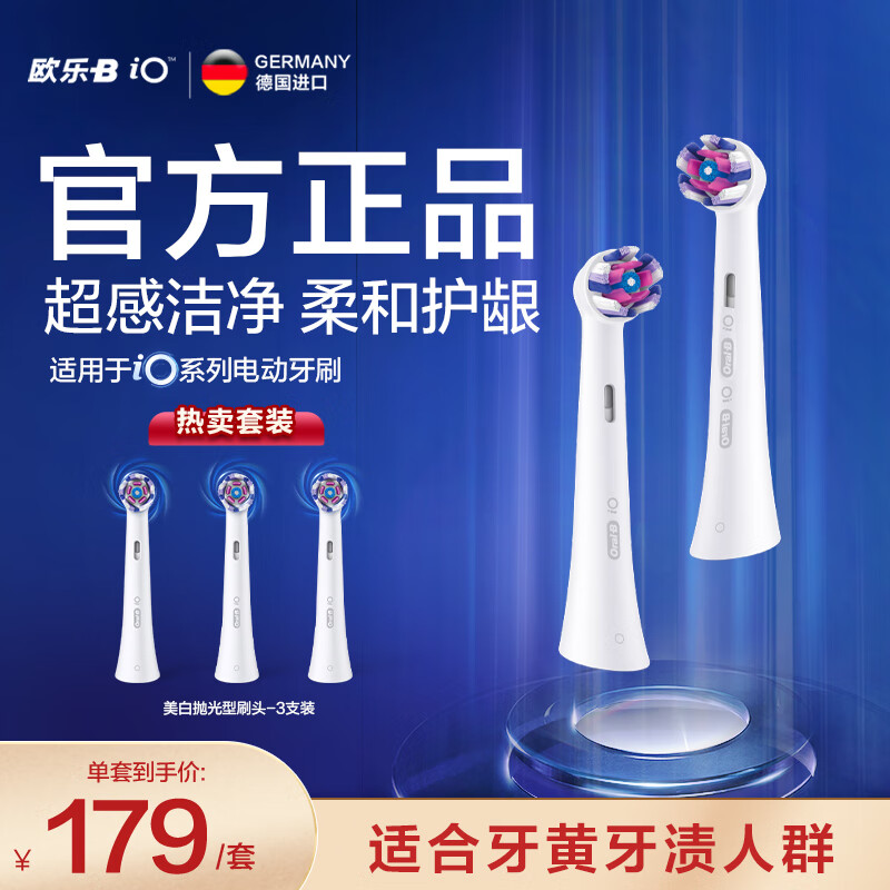 欧乐B电动牙刷头 iO系列 成人美白至臻型刷头3支装WW-3白色适配iO云感刷系列磁波刷头德国进口 深度清洁价格:179.00元!