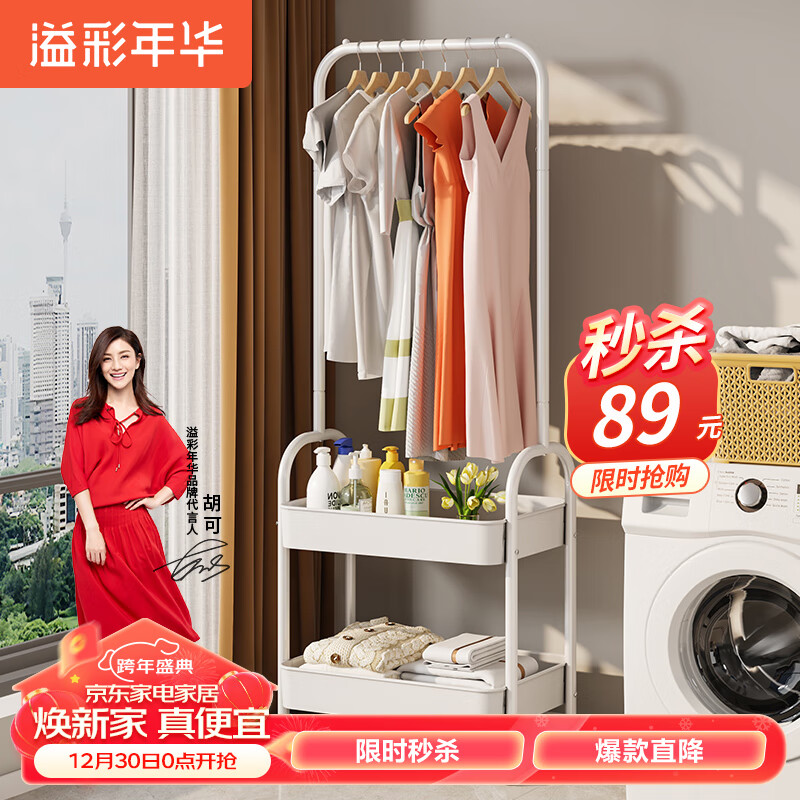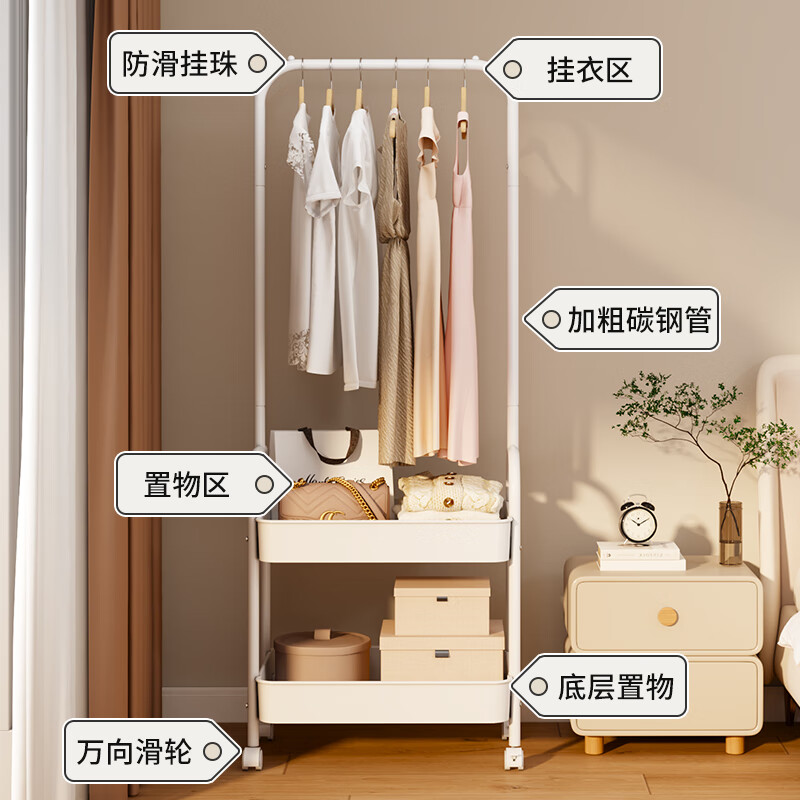 溢彩年华 衣架落地卧室挂衣架宿舍衣帽架阳台晾衣杆简易置物架2520-WH价格:89.00元!