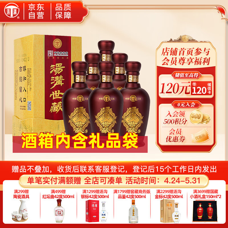 汤沟酒 世藏一代 浓香型白酒 52度 500ml*6瓶 整箱装五一送礼价格:1538.00元!