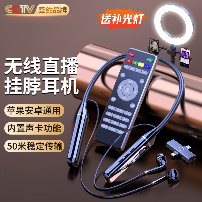 好牧人 无线监听直播耳机主播专用声卡麦克风K歌设备全套网红抖音带货户外唱歌手机蓝牙耳麦颈挂脖式耳返 无线声卡直播耳机【苹果/安卓通用】价格:399.00元!