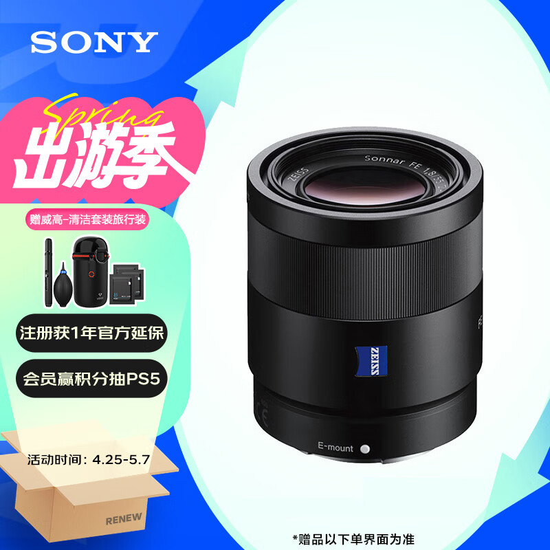 索尼(SONY)微单相机镜头全画幅蔡司标准定焦E卡口(SEL55F18Z)人像 街拍 风光Sonnar T* FE 55mm F1.8 ZA价格:3749.00元!