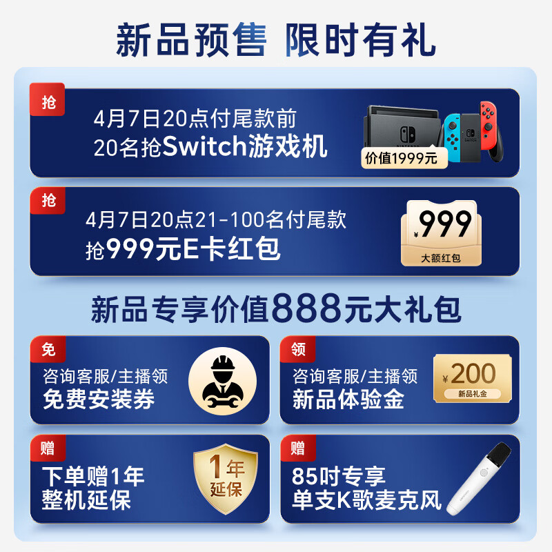 创维电视85A5D Pro 85英寸内置回音壁mini led电视机定制S+高透屏巨幕大屏液晶游戏电视价格:7999.00元!