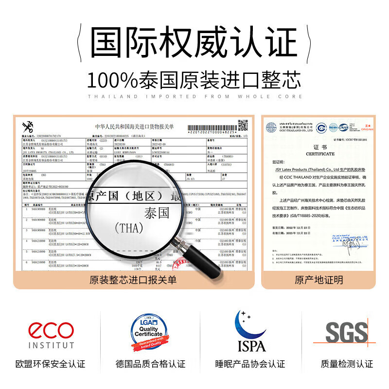 金橡树尊享95D加硬轻奢泰国整芯原产进口乳胶床垫1.8米*2米 94%世爵PLUS价格:1899.00元!