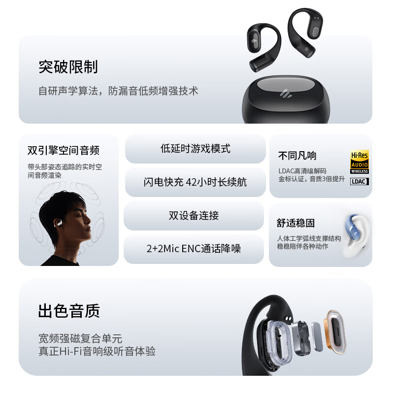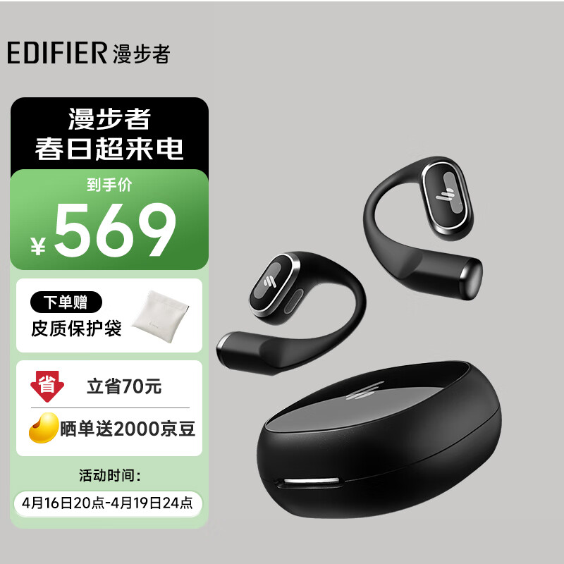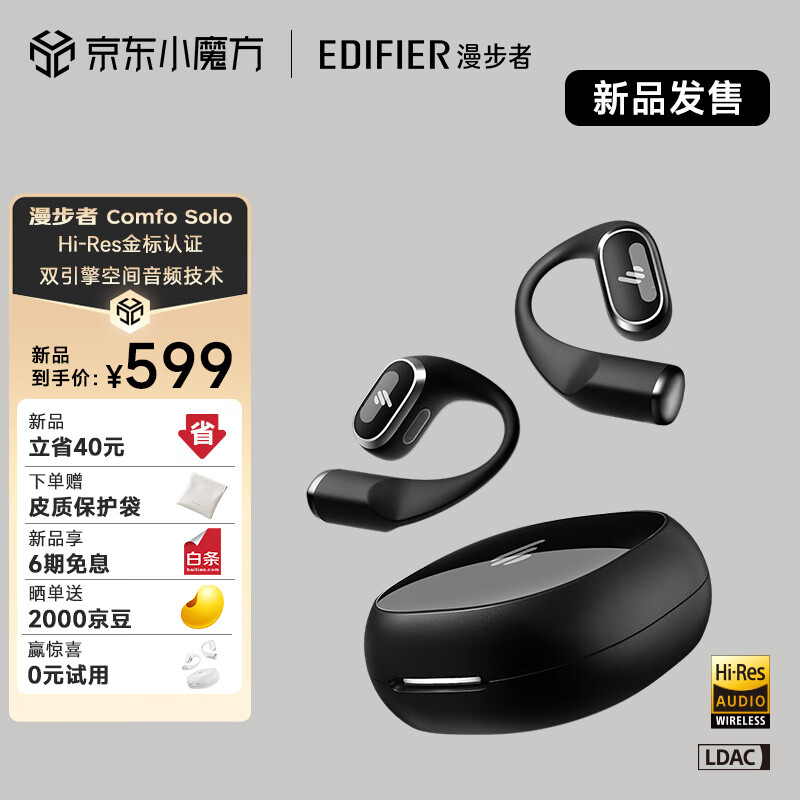 漫步者(EDIFIER)Comfo?Solo开放式真无线蓝牙耳机 不入耳 运动跑步耳机 挂耳式蓝牙耳机 苍穹黑价格:569.00元!