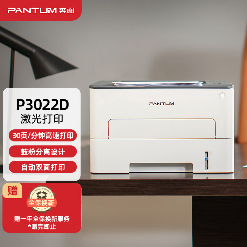 奔图(PANTUM)P3022D黑白激光打印机 自动双面小型办公打印机商用 仅支持电脑打印价格:899.00元!
