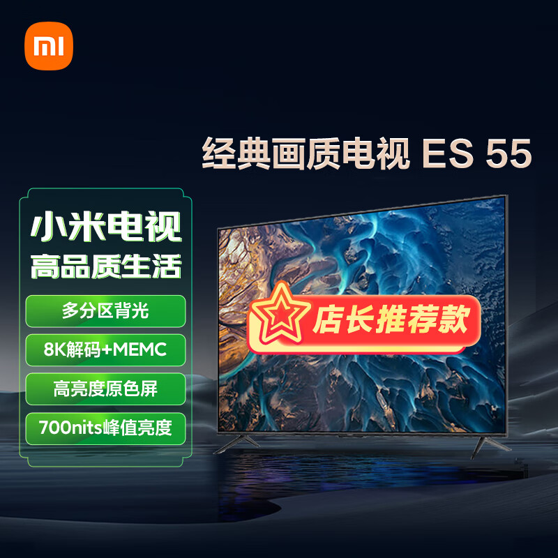 小米电视 ES55 55英寸 4K超高清 多分区背光 远场语音 金属屏智能平板电视机L55M7-ES以旧换新价格:2149.00元!