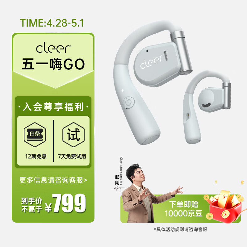 cleerARC音弧蓝牙运动跑步夹耳式耳机无线开车骑行骨传导升级开放挂耳式气传耳麦适用苹果华为节日礼物 海沙白【充电盒升级款-续航18H】价格:1099.00元!