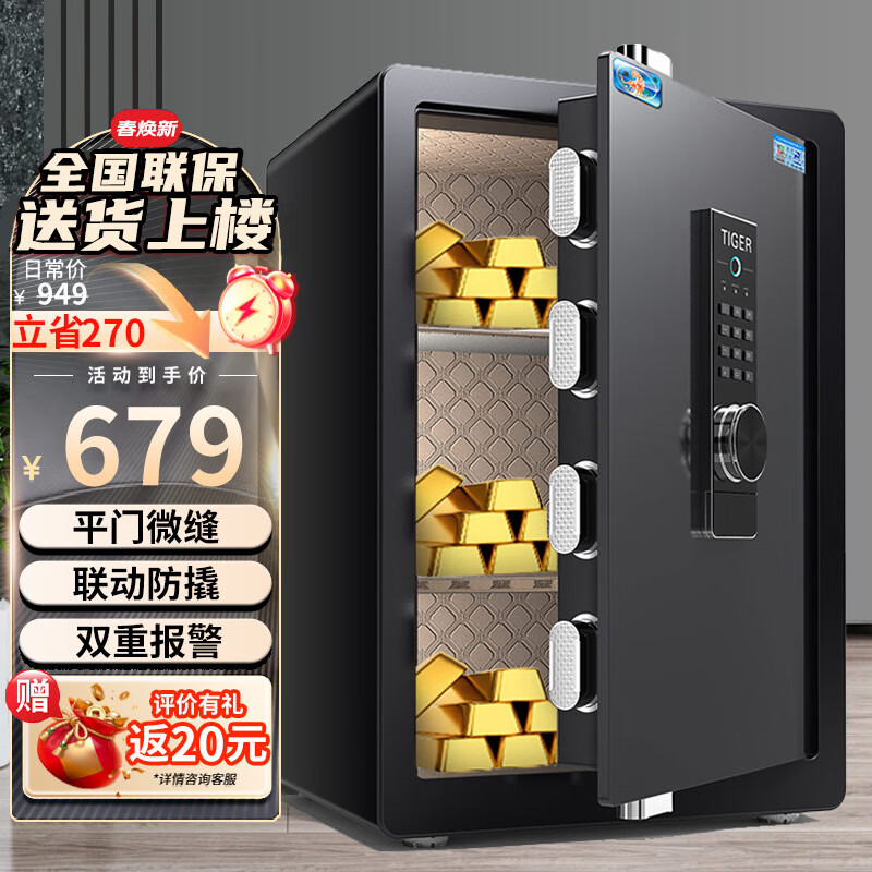 虎牌保险柜家用办公小型保险箱指纹密码全钢防盗可入墙保密保管柜博越系列60cm黑色价格:779.00元!