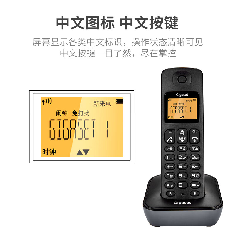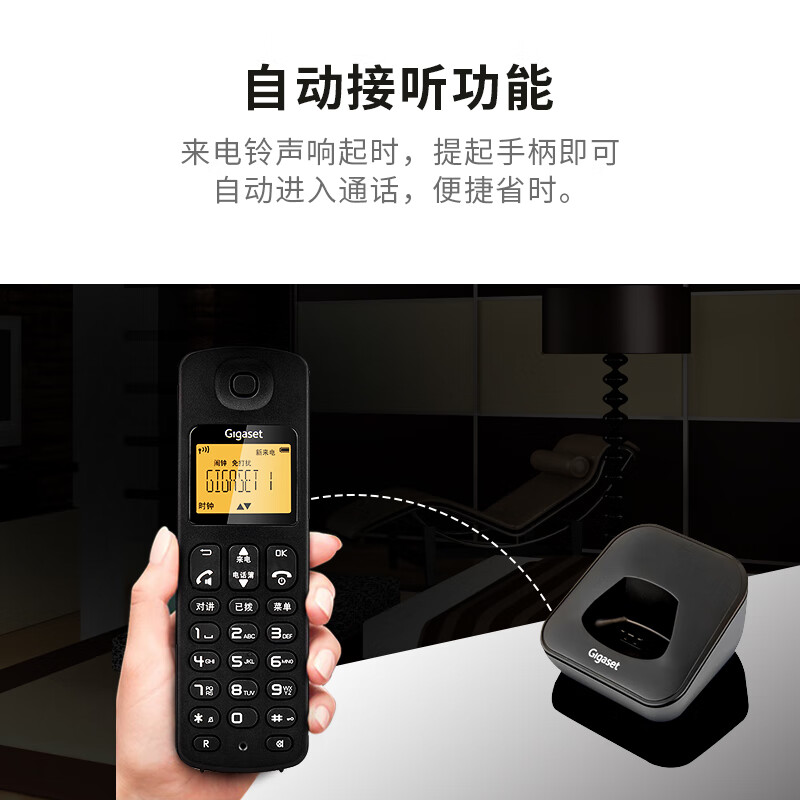 Gigaset原西门子数字无绳电话机 无线座机子母机办公家用固话屏幕背光 中文显示 双高清免提A190L单机(黑)价格:169.00元!