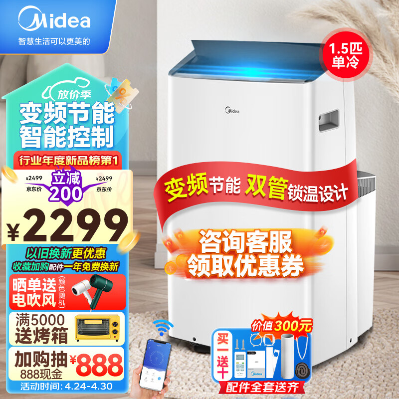美的(Midea)移动空调1.5匹单冷变频 家用厨房空调一体机免安装免排水 KY-35/BP3N8Y-PT价格:2299.00元!